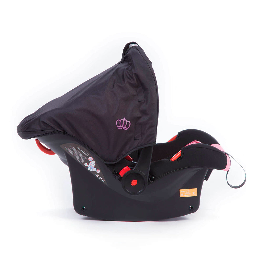 O bebê conforto inclui almofada redutora extra acolchoada com suporte lateral para a cabeça, removível e lavável. Tem também cinto de segurança de 3 pontos com 4 estágios de altura, ajuste do comprimento das tiras e protetores para os ombros. A capota é removível. Para facilitar a limpeza, os tecidos são laváveis em máquina.