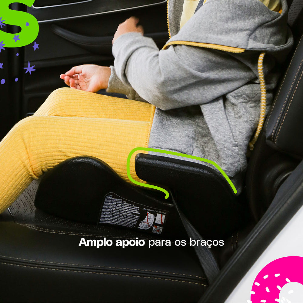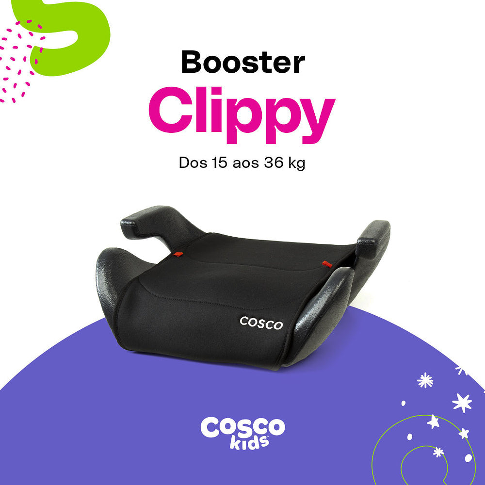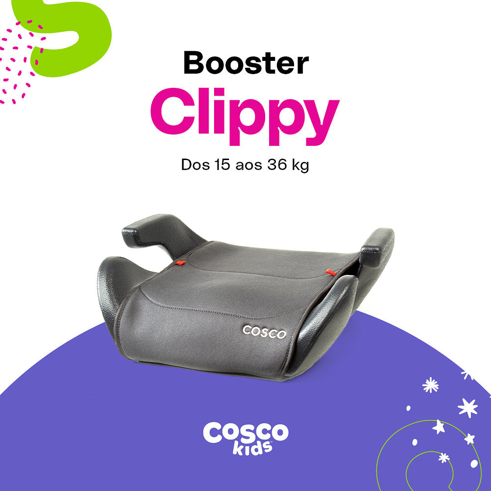O Booster Clippy da Cosco eleva a altura das crianças no banco do carro, deixando-as com os cintos bem posicionados. Foi desenvolvido para as crianças que ainda precisam de dispositivos de elevação nos veículos: sua altura ainda não é suficiente para ficarem confortáveis e seguras, mas já se sentem grandes demais para usar a cadeirinha. Solução com segurança para a criança e praticidade para os pais. O apoio de braços e a sinalização, orientam a passagem correta dos cintos. Estrutura resistente e muito leve. Capa removível e lavável na máquina. Instalação simples, em conjunto com os cintos de 3 pontos dos veículos, sobre a criança.