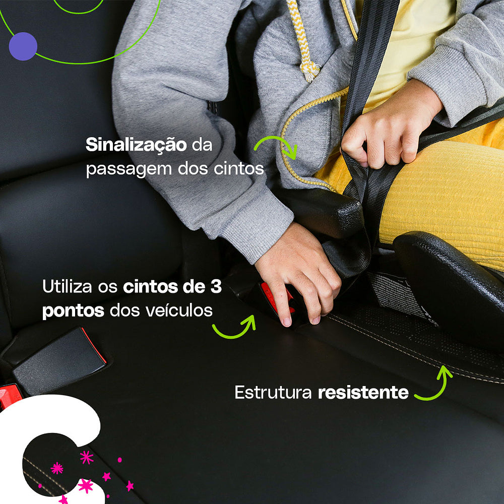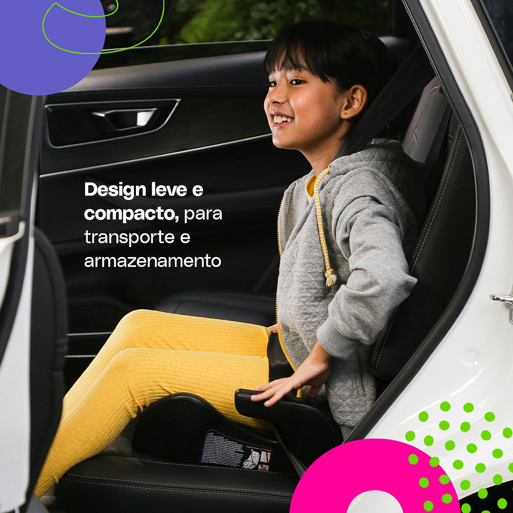 Aprovado pelo INMETRO de acordo com a norma ABNT NBR 14400:2020 para crianças de 15 a 36 kg, Grupos 2 e 3, para instalação nos cintos de 3 pontos dos veículos.