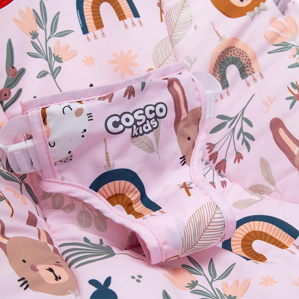 O Zeen tem ainda brinquedos laterais coloridos que atraem a visão da criança com suas formas geométricas e texturas. Ela pode girar e se divertir! O cinto de 3 pontos com proteção acolchoada, pra tranquilidade do papai, da mamãe e dos cuidadores.