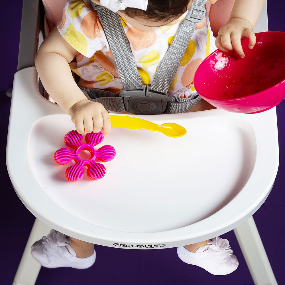 A Frutty também pode ser usada acoplada na cadeira de adulto e, para isso, ela tem tiras pra prender de forma segura e fácil, sendo super prática pra acompanhar a família em idas a restaurantes e à casa da vovó, sem precisar de um lugar a mais na mesa.