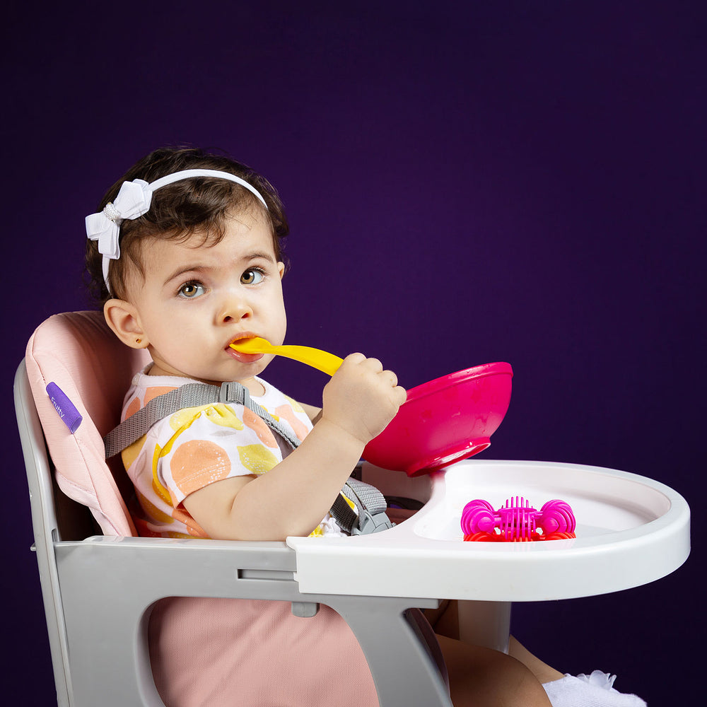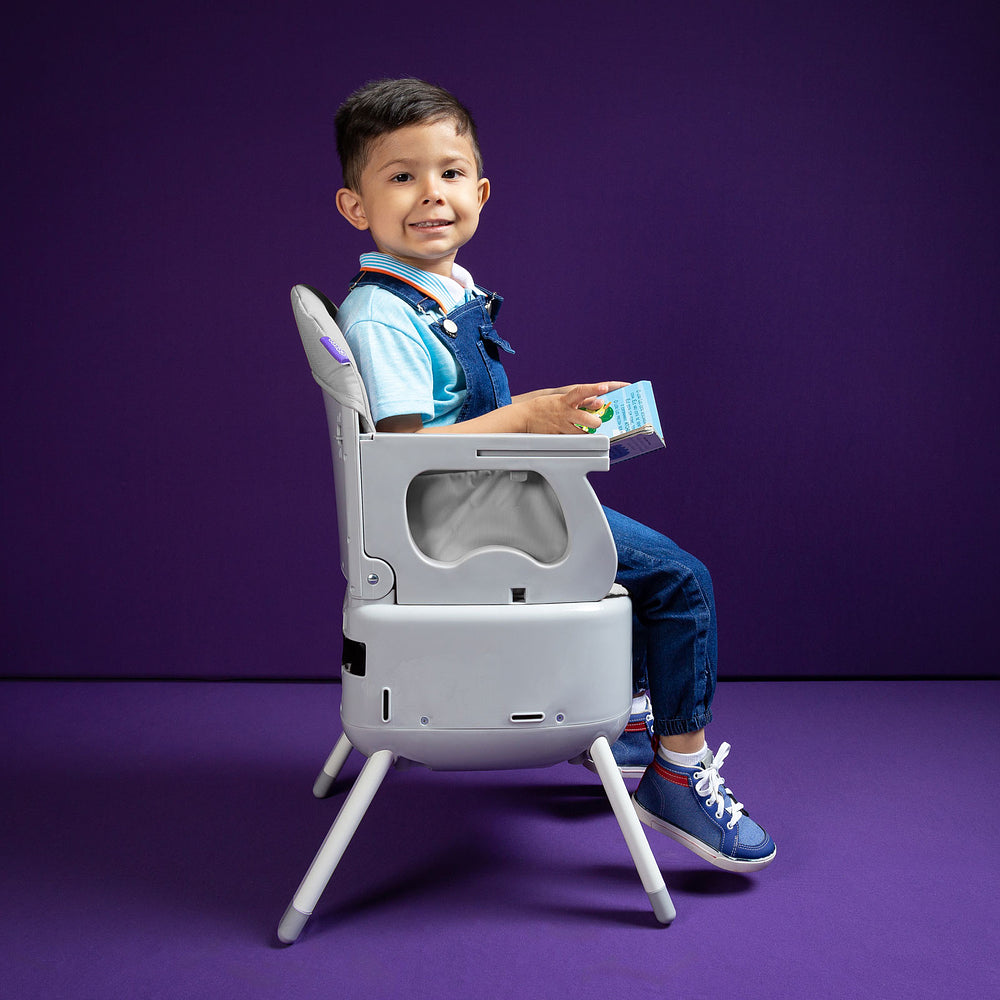Uau! A Frutty é uma cadeira de refeição super versátil: pode ser usada como cadeira de refeição alta, cadeira de refeição baixa, cadeira infantil ou cadeira portátil. Com fechamento compacto, ela ocupa pouco espaço e é super facinho pra transportar.