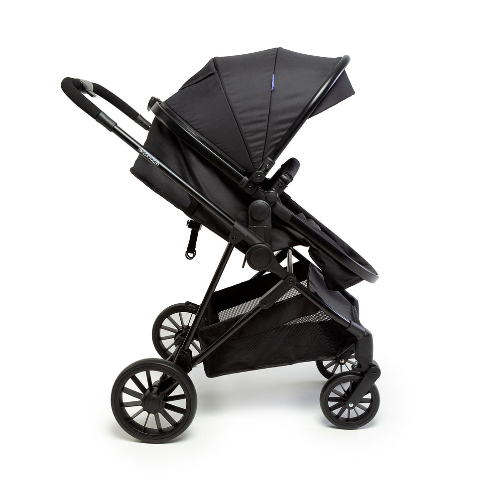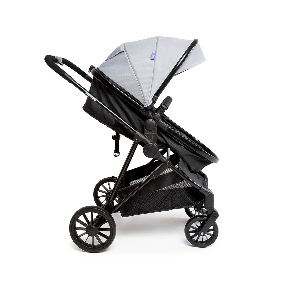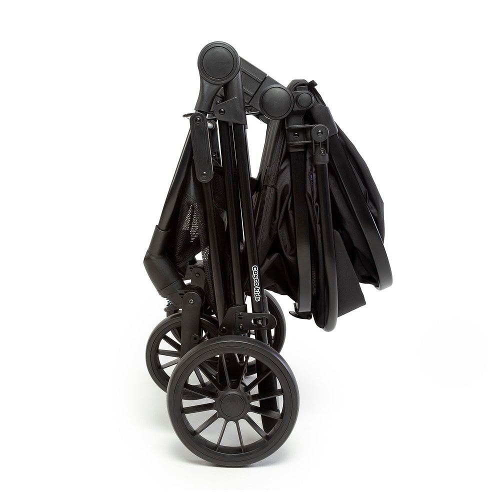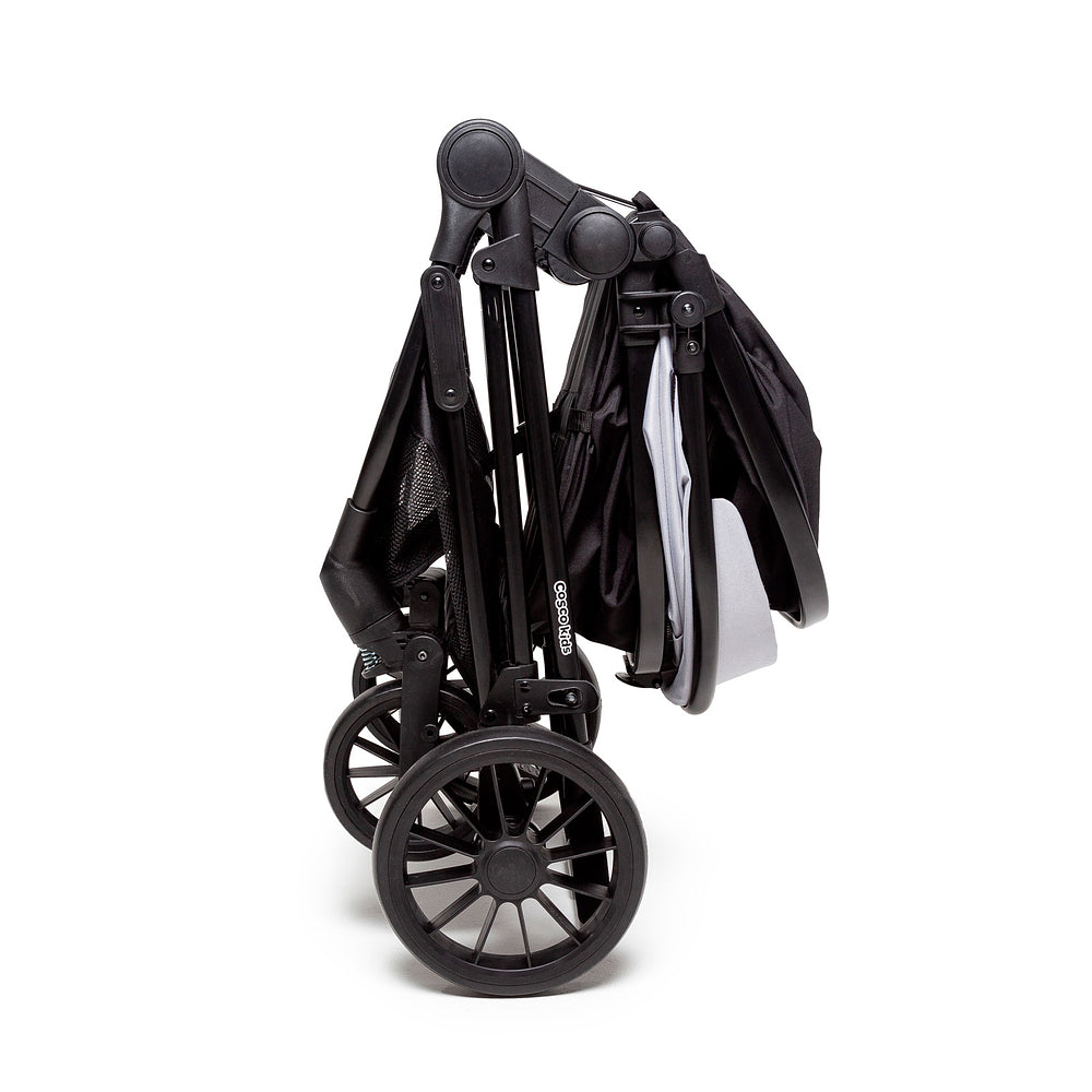 E olha só: o assento fecha junto com o carrinho, o que significa menos esforço na hora de guardar. Além disso, a capota grandona com visor, aba de sol e proteção UV30+, junto com o cesto espaçoso de acesso fácil que suporta até 2,5kg, fazem dele um carrinho supercompleto.