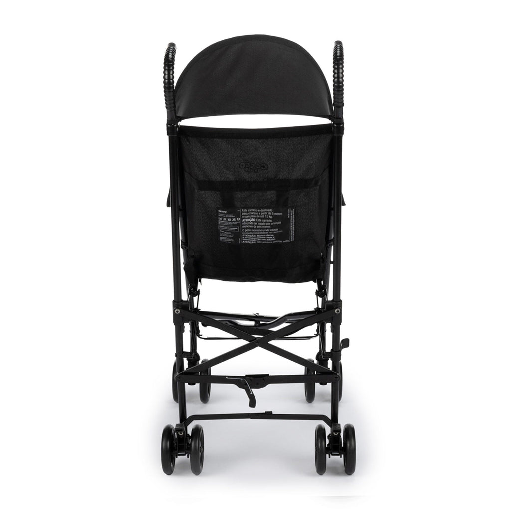 Indicado para bebês acima de seis meses, tem cinto de 5 pontos, apoio para pés, freios interligados nas rodas traseiras e giro 360º nas rodas dianteiras, garantindo a segurança dos passeios.