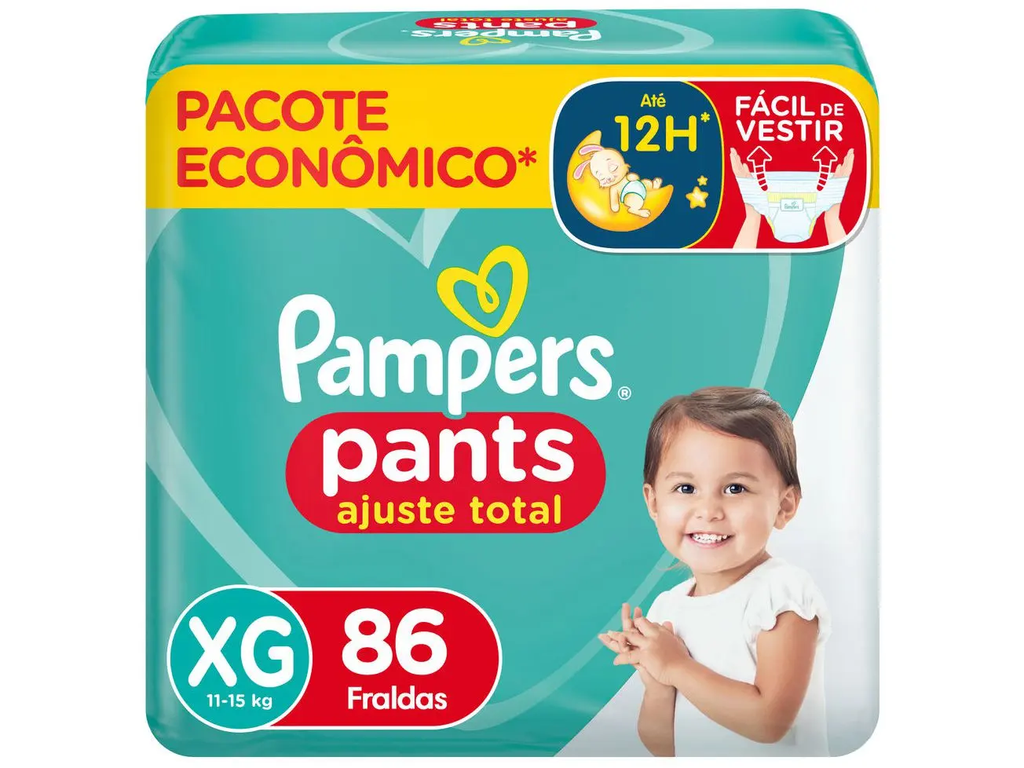 Experimente a nova Pampers Pants Ajuste Total. Com cintura elástica 360 é fácil de pôr mesmo quando eles estão em movimento, para um ajuste perfeito e até 12 horas sequinho.
