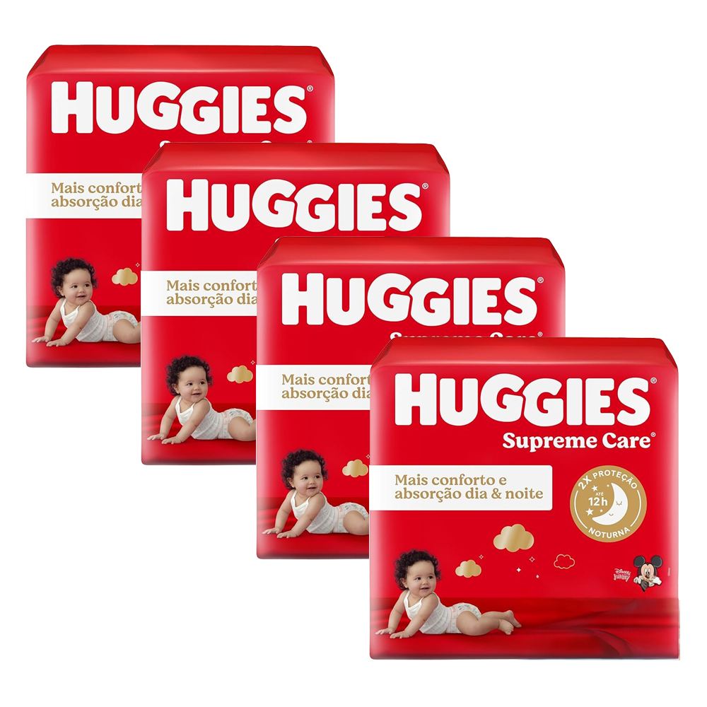 A Supreme Care é a companhia perfeita para você que busca máxima proteção enquanto seu bebê se movimenta. Com uma suavidade mais macia do que nunca, especialmente na parte traseira, proporciona conforto e absorção ideais, mantendo seu bebê sempre sequinho. Graças à sua tecnologia exclusiva, a Supreme Care é a única com canais em formato de X, adaptando-se para oferecer mais liberdade de movimento, com uma anatomia que se adapta aos movimentos do seu bebê. Com ajustes elásticos na cintura, barreiras e orelhas elásticas para máxima flexibilidade e conforto, oferece duas vezes mais proteção noturna comparada às fraldas Huggies sem a tecnologia Xtra-Flex.