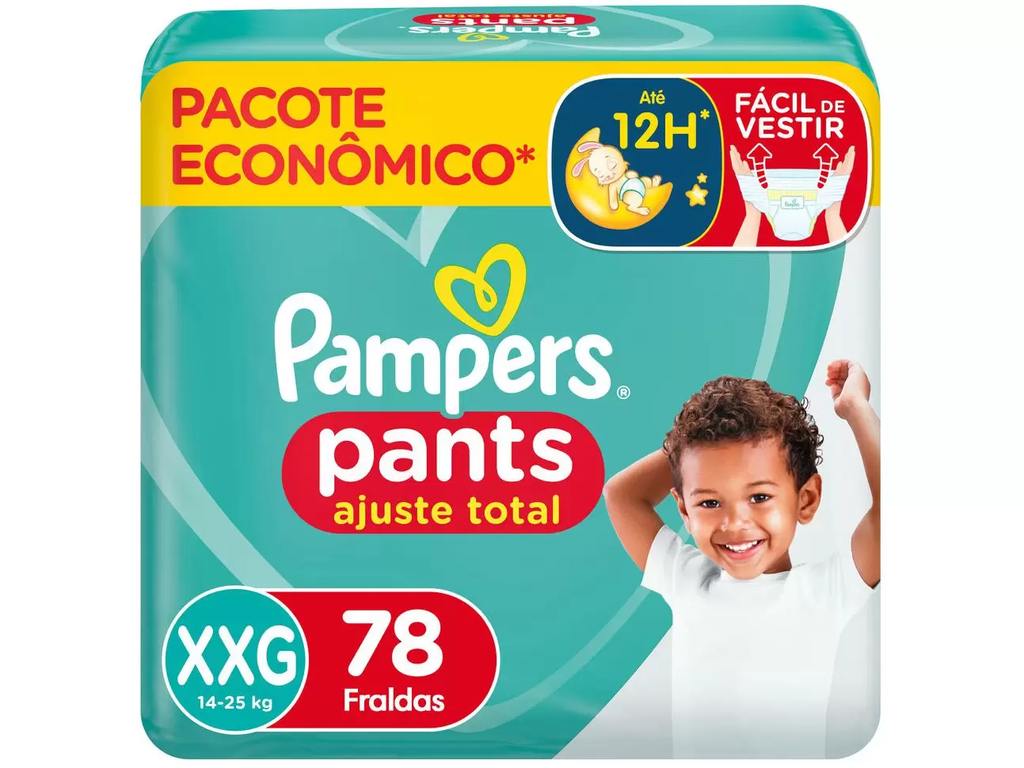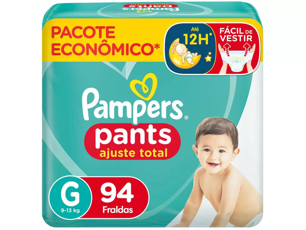 Experimente a nova Pampers Pants Ajuste Total. Com cintura elástica 360 é fácil de pôr mesmo quando eles estão em movimento, para um ajuste perfeito e até 12 horas sequinho.