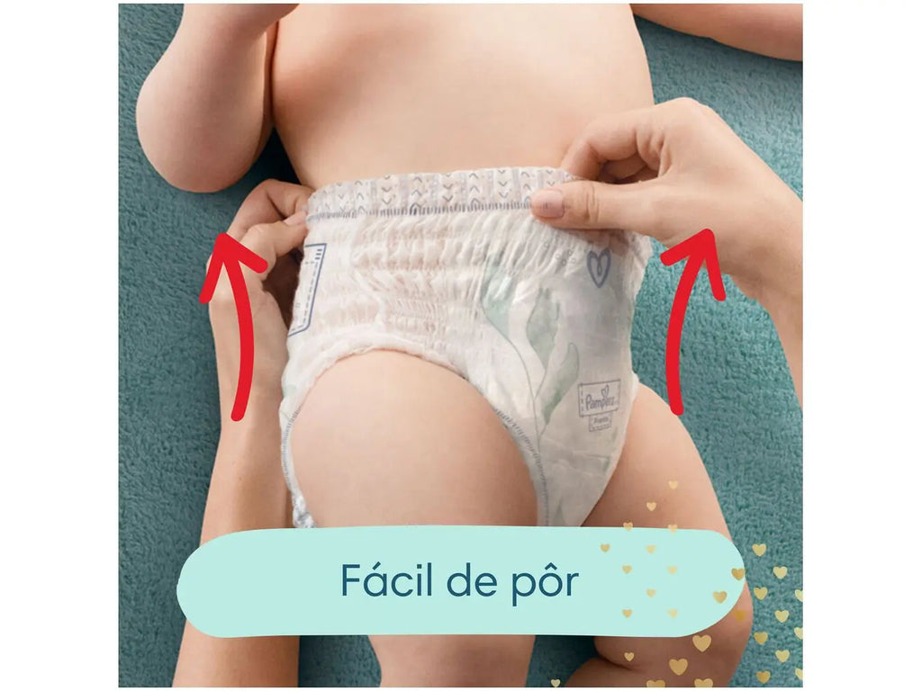 A fralda calça Pampers Pants Premium Care possui cintura elástica 360° é fácil de colocar até quando o bebê está em movimento, dando um ajuste perfeito e mantendo a pele seca e protegida. A fralda descartável Pampers Premium Care Pants possui canais de ar que permitem que o ar circule livremente pela fralda, para que o bumbum fique menos abafado e a pele fique arejada e sequinha durante a noite. Pampers Pants Premium Care também possui proteção Pampers Premium Care, a proteção mais suave para a pele do bebê, ultra respirável para manter a pele do bebê fresca e loção hipoalergênica que ajuda a prevenir irritações.