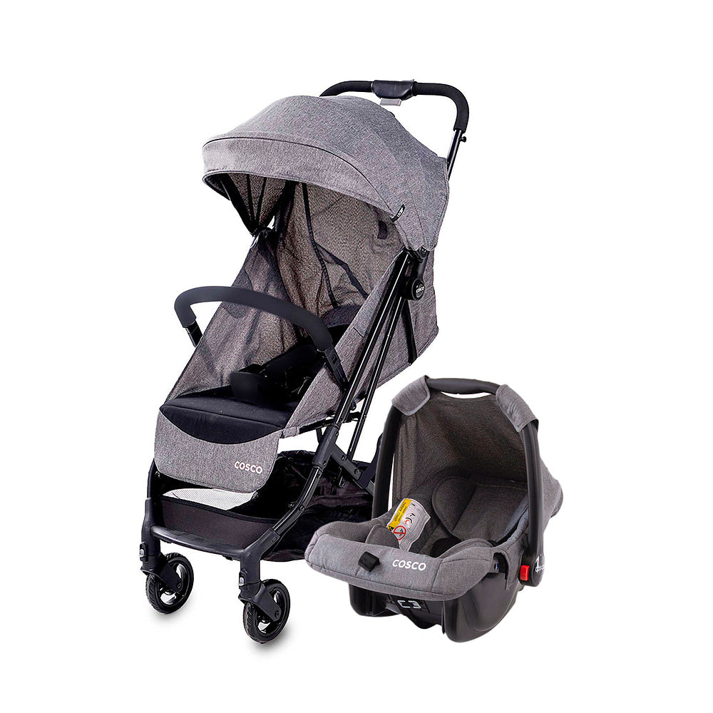 O Travel System Minny 3.0 Duo da Cosco é o conjunto do carrinho compacto que você sempre quis com o bebê conforto que você precisa! O carrinho é o mais prático para o dia a dia, com alça telescópica, para levar onde precisar, como uma mala e nunca enjoar. Muito confortável, tem assento reclinável em múltiplas posições, pode ser usado desde o nascimento e continuar acompanhando o bebê em suas aventuras mesmo maiorzinho. Fechamento simplificado com apenas uma das mãos e a alça telescópica pode ser levantada e recolhida facilmente para levar de um lugar a outro, mesmo em viagens. Leve, estrutura em alumínio, conta com ajuste para o apoio dos pés, barra frontal removível e ampla capota retrátil, com aba de sol, visor e FPS UV+, que vai oferecer a proteção necessária nos dia mais ensolarados. Além disso, tem cinto de cinco pontos com ajuste de altura e largura, rodas dianteiras giratórias com trava de movimento, freios interligados e cesto porta-objetos com capacidade para 2 kg.