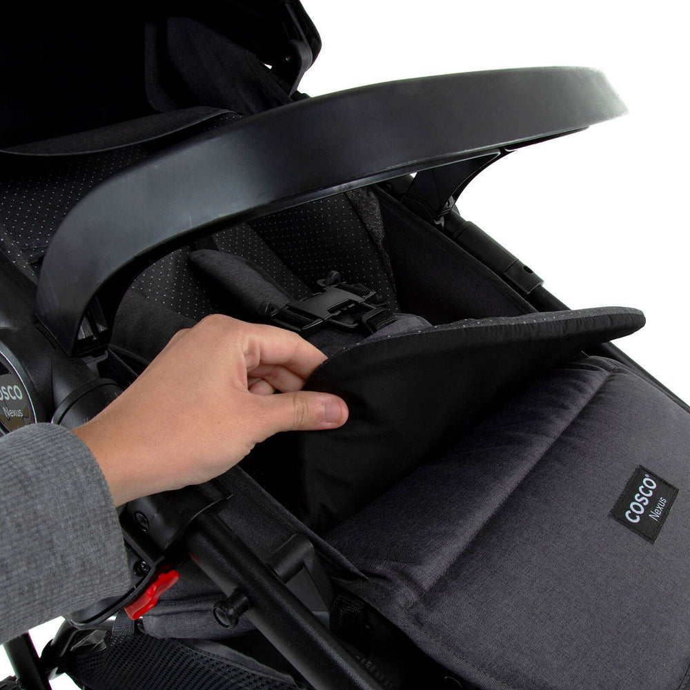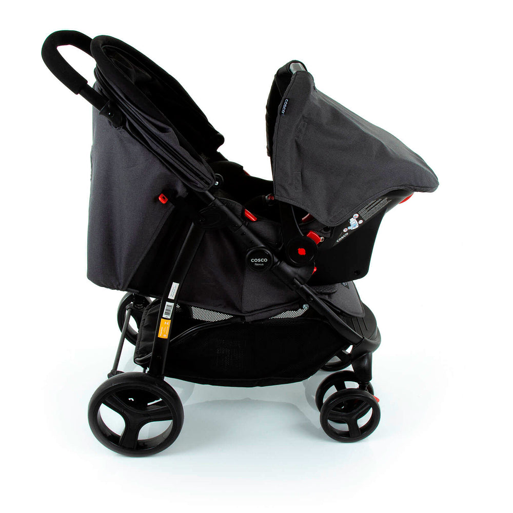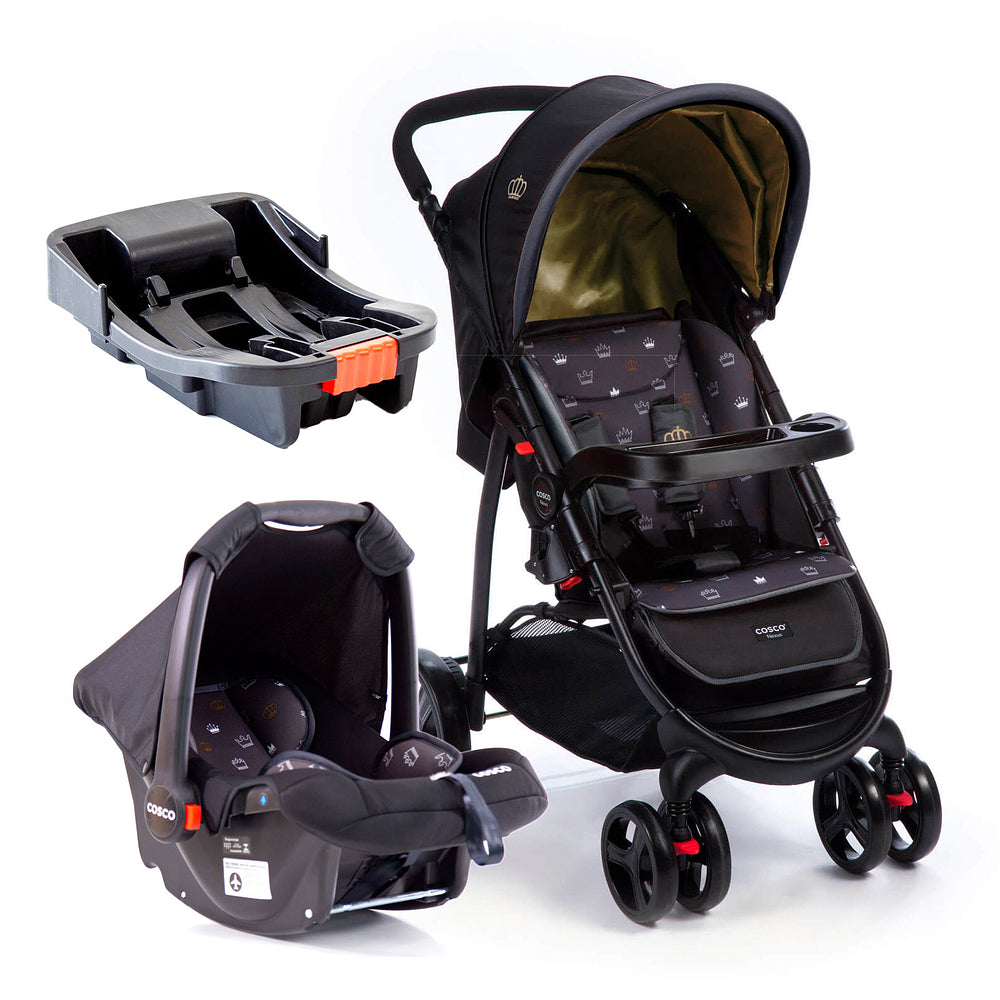 O conjunto Travel System Nexus TRIO da Cosco inclui além do carrinho, o bebê conforto Wizz e a praticidade da base veicular, para que a instalação no carro seja feita da forma fácil para os pais e segura para o bebê. Rodas grandes, estável para dirigir, múltiplas posições do assento, incluindo o modo totalmente deitado, como um berço, ainda permite levantar o apoio para os pés, formando um ambiente mais protegido e acolhedor, perfeito para o recém-nascido.