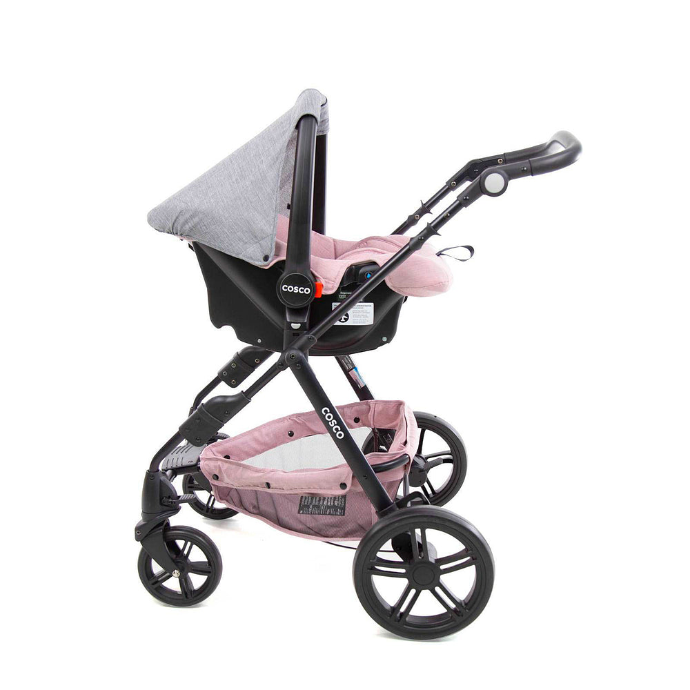 Carrinho aprovado pelo INMETRO conforme norma ABNT NBR 14389-2:2022 para crianças do nascimento até 22 kg*. Bebê conforto aprovado pelo INMETRO conforme a norma ABNT NBR 14.400 para crianças do nascimento aos 13kg (Grupo 0+).