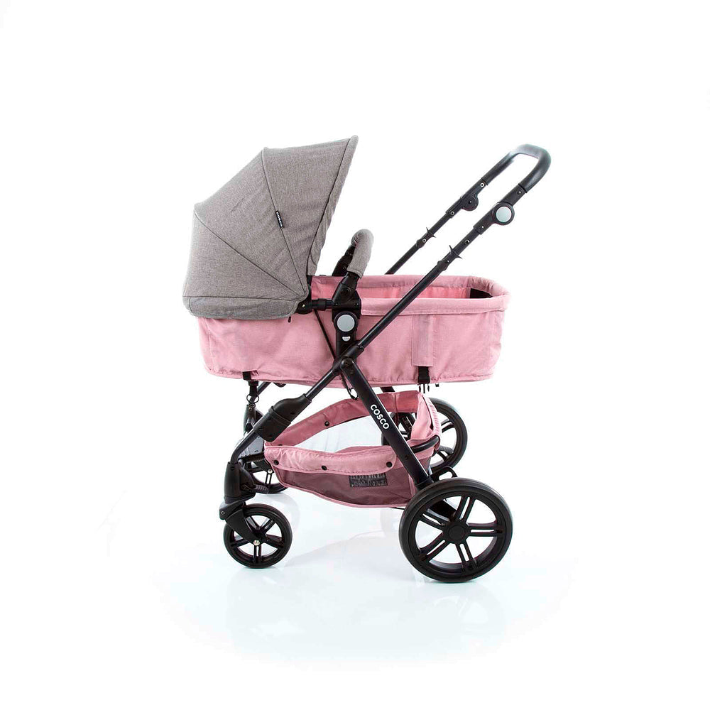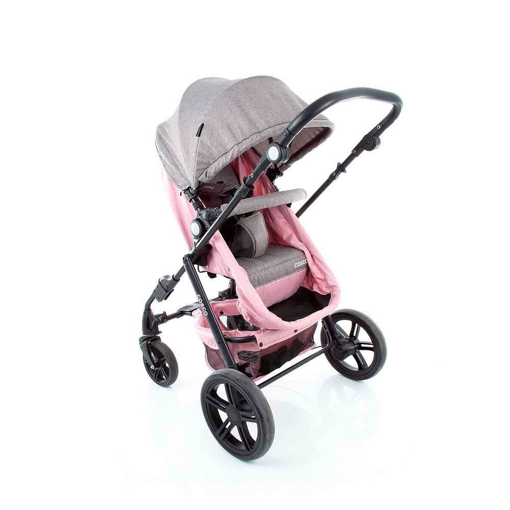 Com assento reversível, o carrinho permite manter um contato visual permanente com o bebê ou colocá-lo de frente para o mundo em passeios divertidos. Inicialmente, use a função moisés para o sono do recém-nascido e depois tenha mais 3 posições de inclinação. A barra frontal acolchoada abre para colocar o bebê e a manopla tem ajuste de altura para os pais. Capota de sol com FPS UV30+, cinto de 5 pontos regulável em altura e largura, rodas dianteiras com giro 360° e trava e suspensão nas rodas traseiras com freio de acionamento fácil.